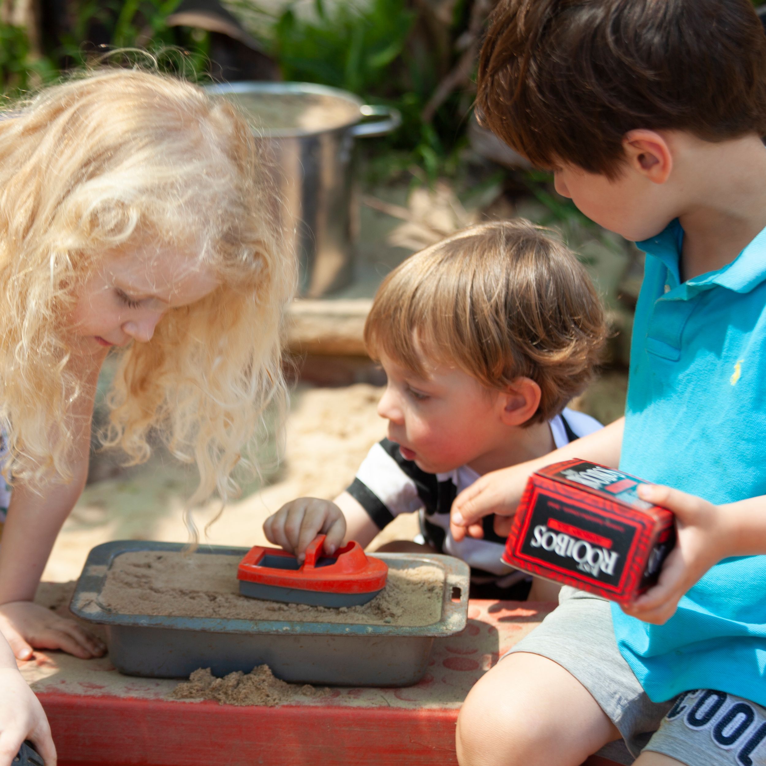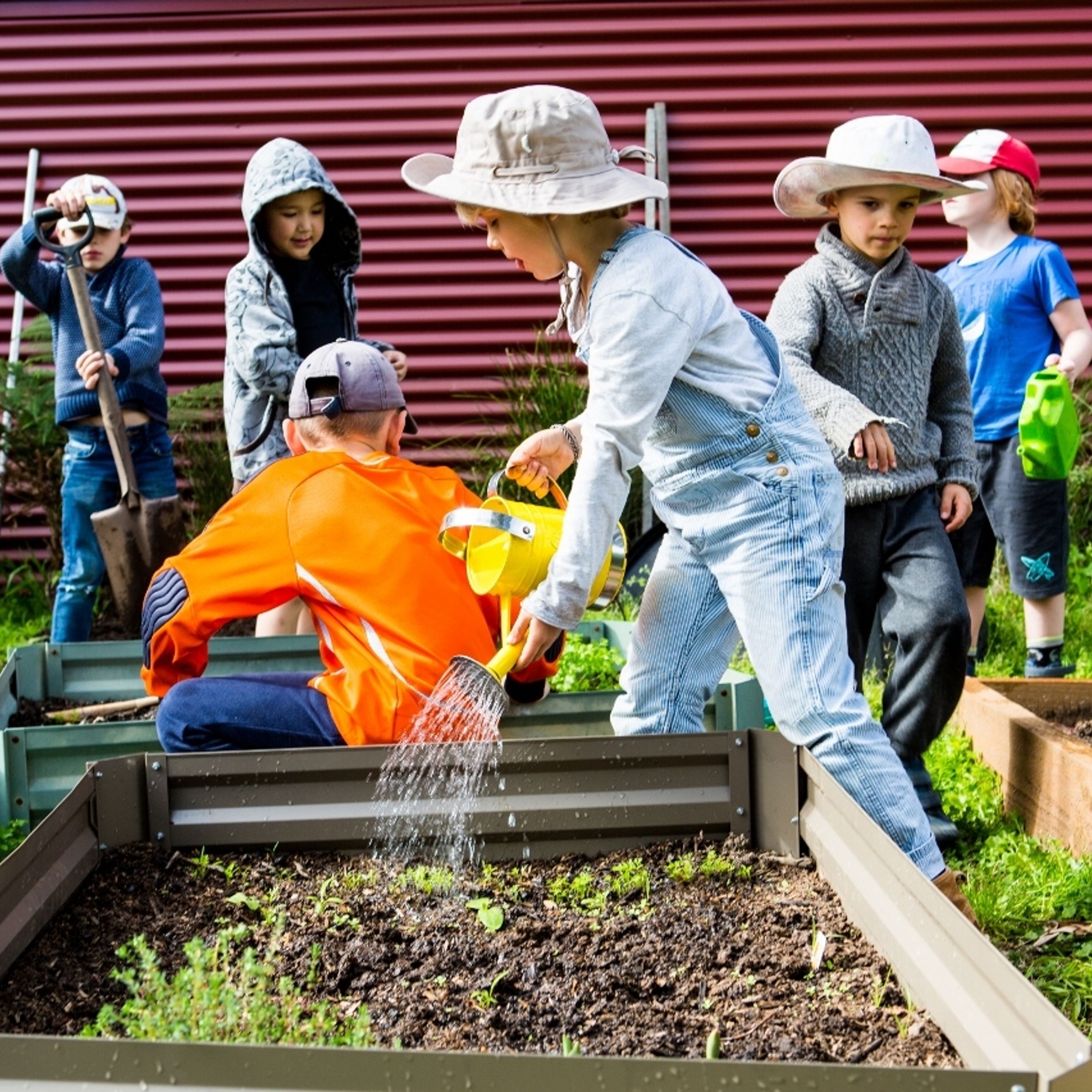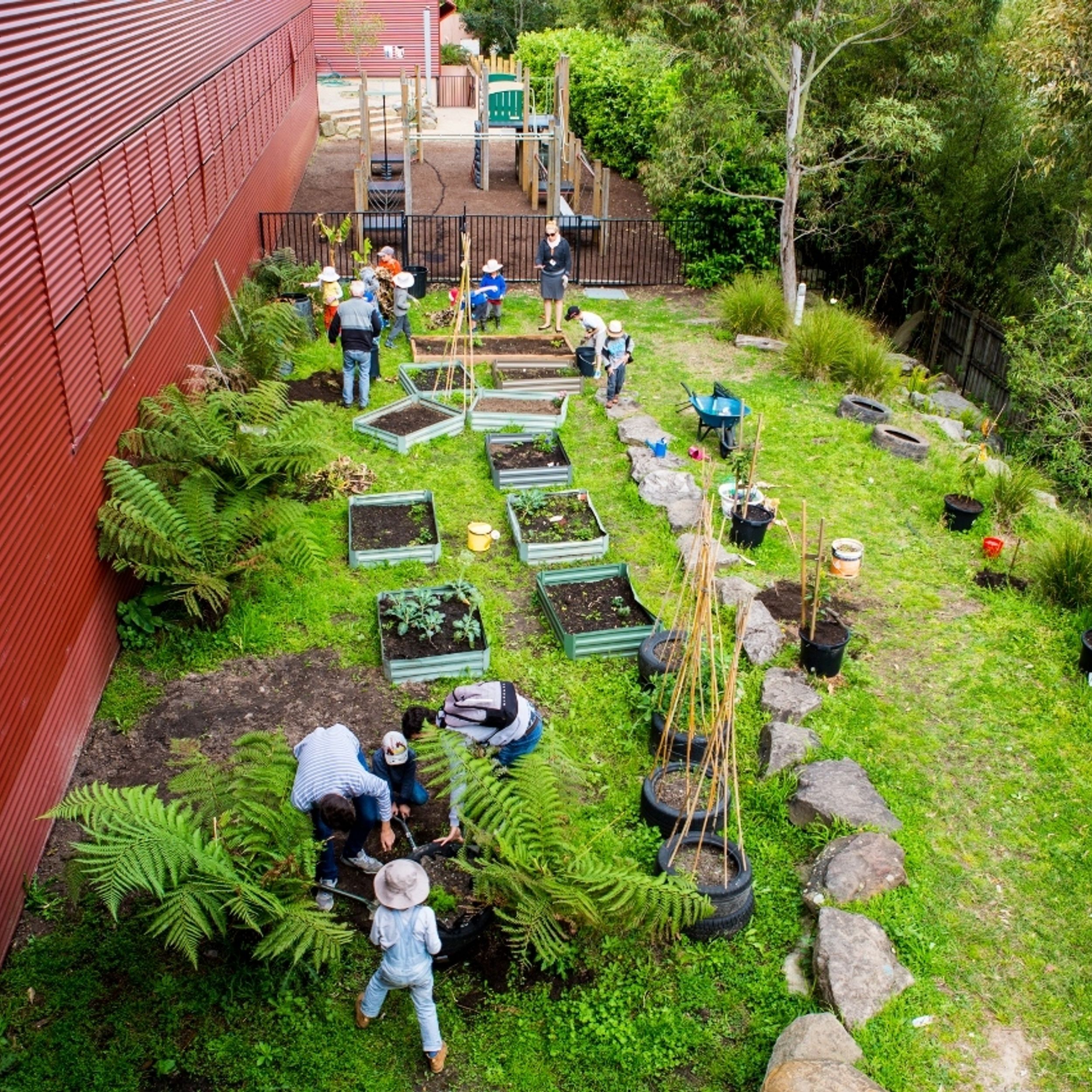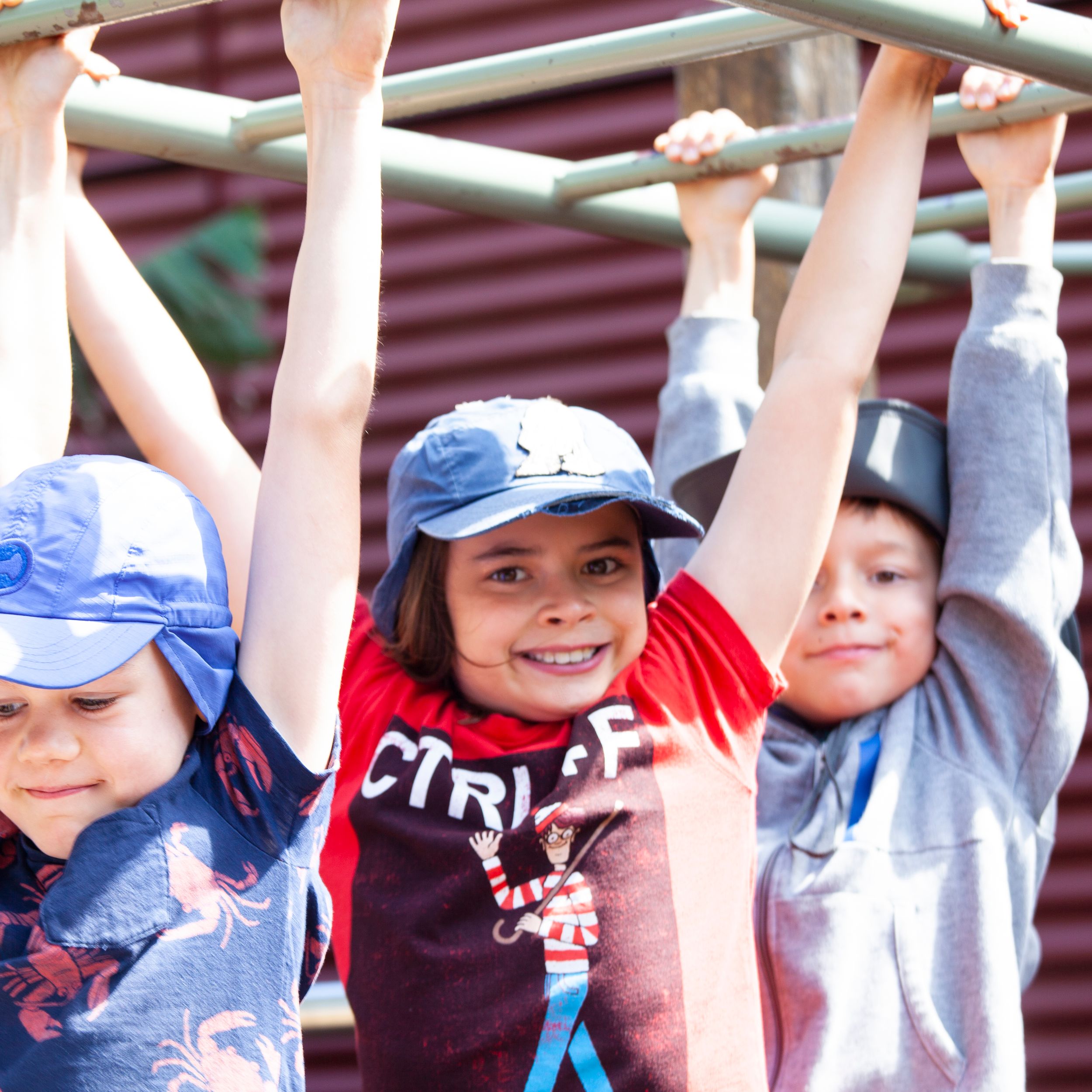 Viele Außenspielplätze mit Sonnensegeln.