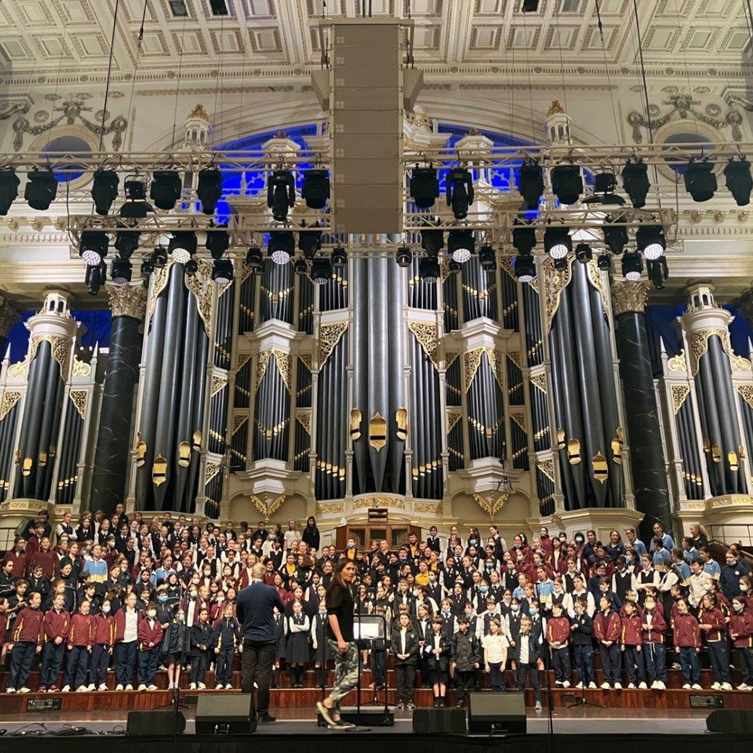 On Tuesday 6th September, the GISS Senior Choir participated in the IPSHA Performing Arts Festival in Sydney Town Hall. This was a collaborative evening of music, presented by six private and independent schools from throughout NSW. The concert opened with a combined symphony orchestra (in which four GISS students participated), playing the Australian National Anthem and Chloe and Marco standing on the stage to represent our school. This was followed by each school presenting their own item. Our Senior Choir chose a German song by Adel Tawil, entitled “Menschenkinder”, and at the end of the evening, all schools joined together in a massed choir of around 300 students, singing two songs that we had all rehearsed for the occasion.