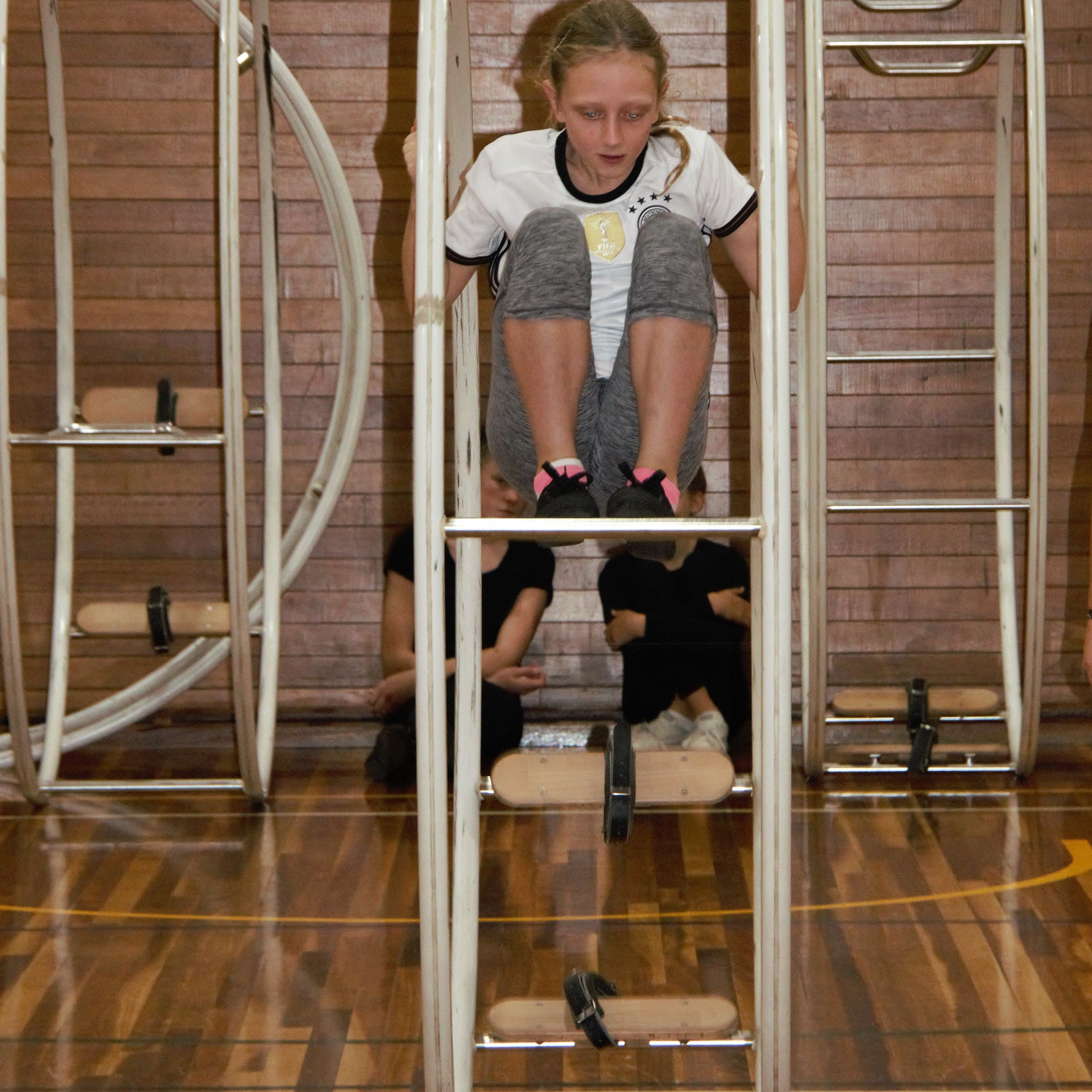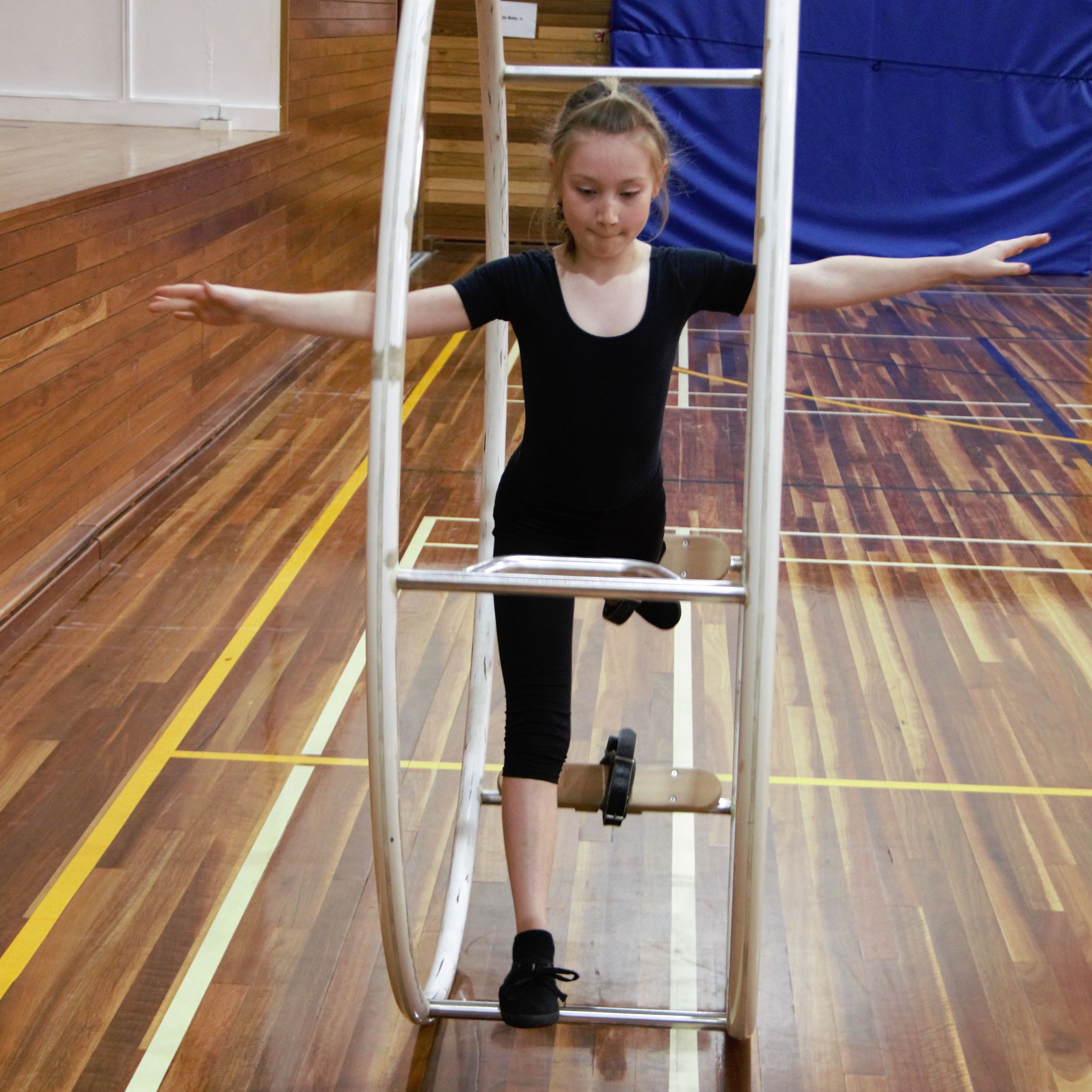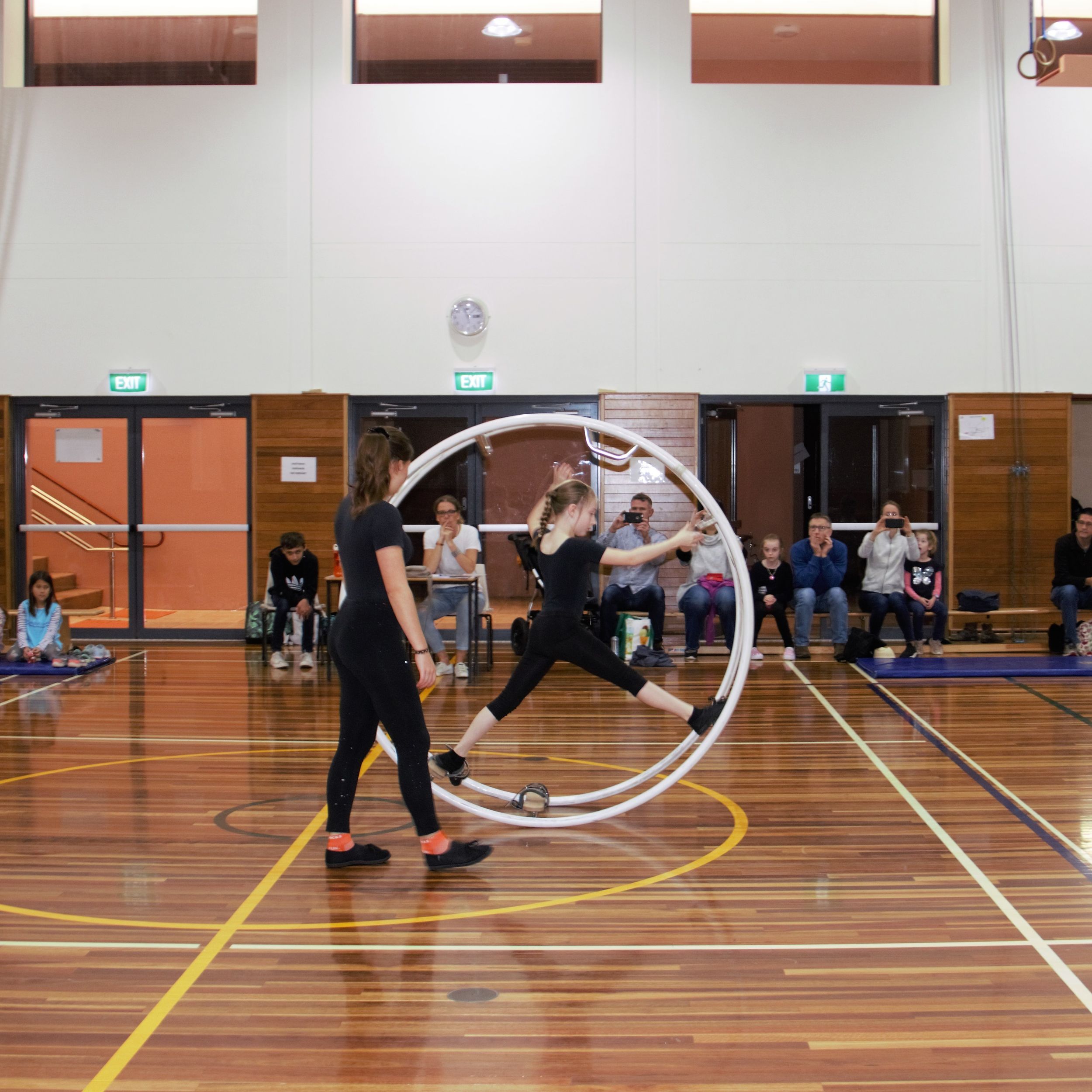 On 19th May 2019, the German International School Sydney hosted the second German Wheel competition since its formation. The 9 competitors, aged between 9 and 28 years, started in 3 different start groups, depending on their age and level. The three youngest and newest competitors, Carla, Emmelie and Juliana were showing their beginner’s routines (Level 5 routine), with Juliana making first place. It was their first ever competition, having practised German Wheel for approximately one year. Remarkably, all of the girls were able to complete their routines without assistance from a trainer despite nervousness and limited amount of experience.
