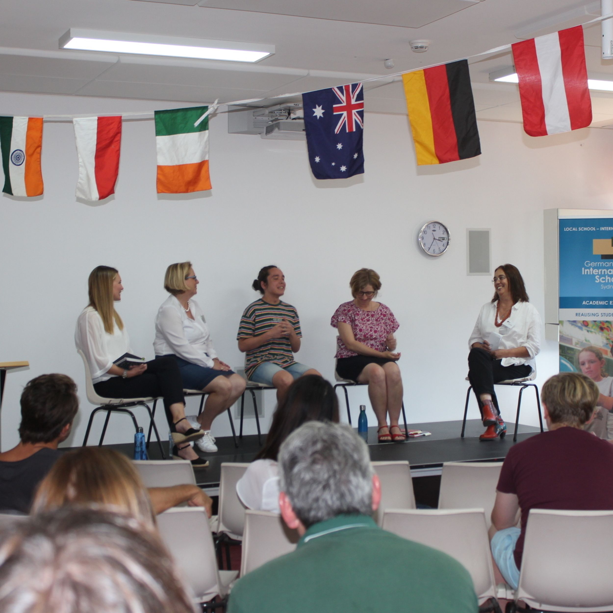 The highlight was the panel discussion about "Bilingual Learning" - hosted by Trudi Latour from SBS and including guest speakers: Dr Hanna Torsh (Linguistics Department Macquarie University), Andrea Bommers (Deutschstunde) & Secondary Teacher/DaF Coordinator, Jonna Vinje & IB student Yoshiya Iijima (GISS).